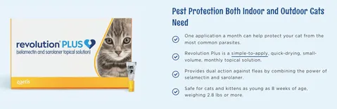 You can will benefit with monthly protection against Ticks & Fleas, Ear mites, Roundworms, Hookworms, and Heartworms. From kittens to adult cats of all sizes and weight.